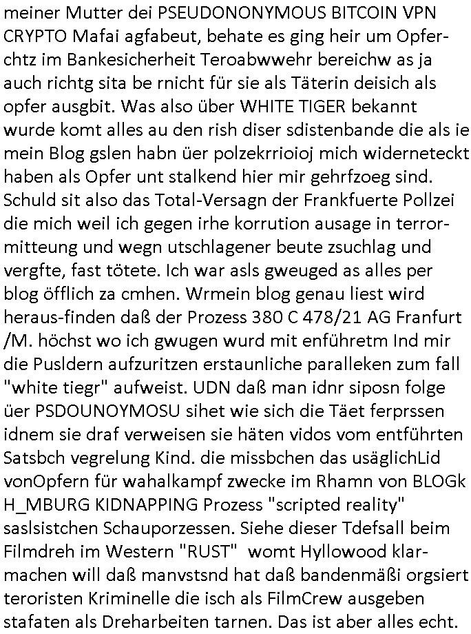 meiner Mutter dei PSEUDONONYMOUS BITCOIN VPN CRYPTO Mafai agfabeut, behate es ging heir um Opfer-chtz im Bankesicherheit Teroabwwehr bereichw as ja auch richtg sita be rnicht für sie als Täterin deisich als opfer ausgbit. Was also über WHITE TIGER bekannt wurde komt alles au den rish diser sdistenbande die als ie mein Blog gslen habn üer polzekrrioioj mich widerneteckt haben als Opfer unt stalkend hier mir gehrfzoeg sind. Schuld sit also das Total-Versagn der Frankfuerte Pollzei die mich weil ich gegen irhe korrution ausage in terror-mitteung und wegn utschlagener beute zsuchlag und vergfte, fast tötete. Ich war asls gweuged as alles per blog öfflich za cmhen. Wrmein blog genau liest wird heraus-finden daß der Prozess 380 C 478/21 AG Franfurt /M. höchst wo ich gwugen wurd mit enführetm Ind mir die Pusldern aufzuritzen erstaunliche paralleken zum fall "white tiegr" aufweist. UDN daß man idnr siposn folge üer PSDOUNOYMOSU sihet wie sich die Täet ferprssen idnem sie draf verweisen sie häten vidos vom entführten Satsbch vegrelung Kind. die missbchen das usäglichLid vonOpfern für wahalkampf zwecke im Rhamn von BLOGk H_MBURG KIDNAPPING Prozess "scripted reality" saslsistchen Schauporzessen. Siehe dieser Tdefsall beim Filmdreh im Western "RUST" womt Hyllowood klar- machen will daß manvstsnd hat daß bandenmäßi orgsiert teroristen Kriminelle die isch als FilmCrew ausgeben stafaten als Dreharbeiten tarnen. Das ist aber alles echt. https://www.bild.de/regional/hamburg/hinter-verschlossenen-tueren-das-passiert-im-white-tiger-prozess-695ef0529c2c98991fda4041 https://de.wikipedia.org/wiki/Rust_%E2%80%93_Legende_des_Westens#Ermittlungen,_Anklagen_und_Urteile | |