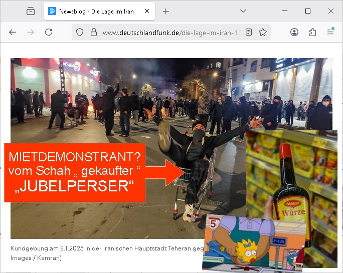 https://www.deutschlandfunk.de/die-lage-im-iran-104.html BILD: MIETDEMONSTRANT? vom Schah "gekaufter" "JUBELPERSER" | |