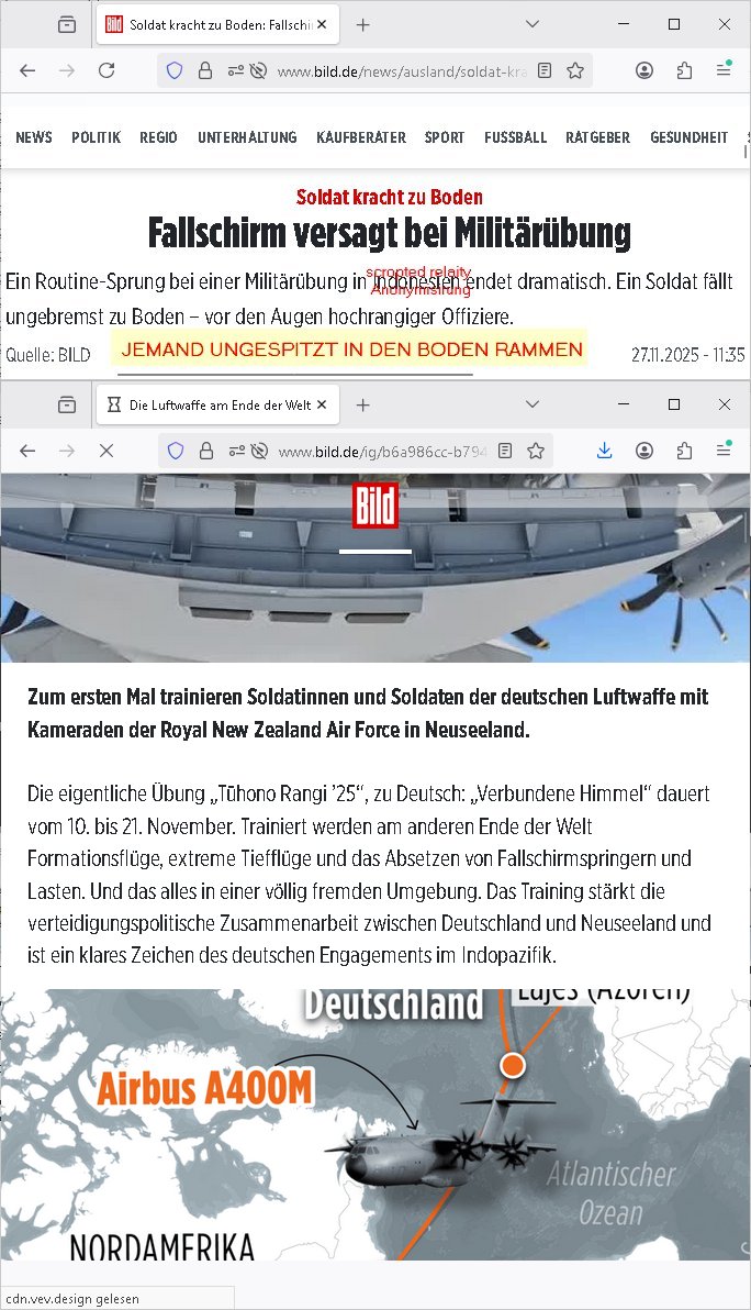 https://www.bild.de/news/ausland/soldat-kracht-zu-boden-fallschirm-versagt-bei-militaeruebung-69243463637be5004f6da529 https://www.bild.de/ig/b6a986cc-b794-48c2-9e23-29bdbea4da65/index/index.html indonisein (ist das sctrted relity anonymsierung?) - jemand ungespitzt in den boden rammen schrieb gerade im blog was überzockERbergER fakebook social media kartell finazerung - Korrupte Terroabwehr mit TV Kamerateam? http://tiktok.maximilian.baehring.at/20251128-0712-F1114873807387605.mp4 https://www.facebook.com/maximilian.baehring.9/videos/1114873807387605 | |
