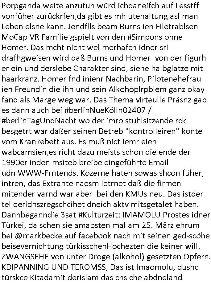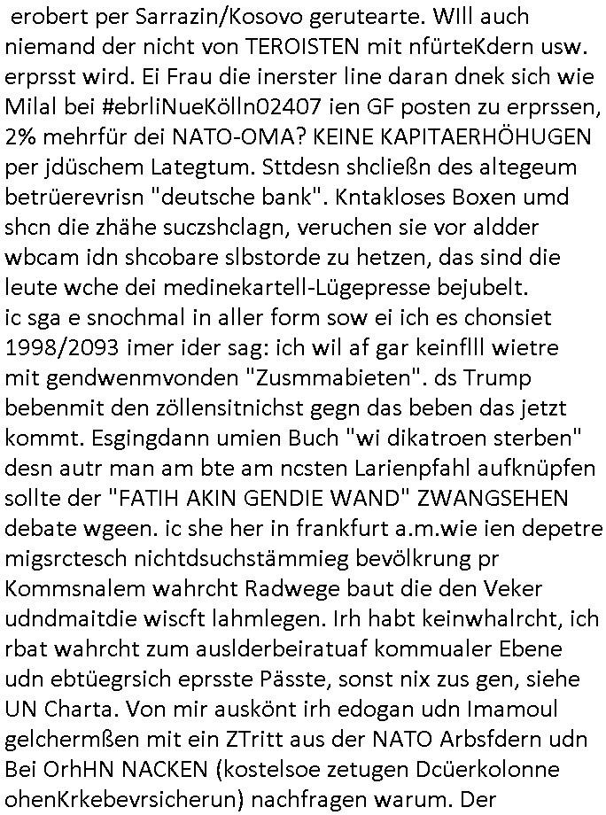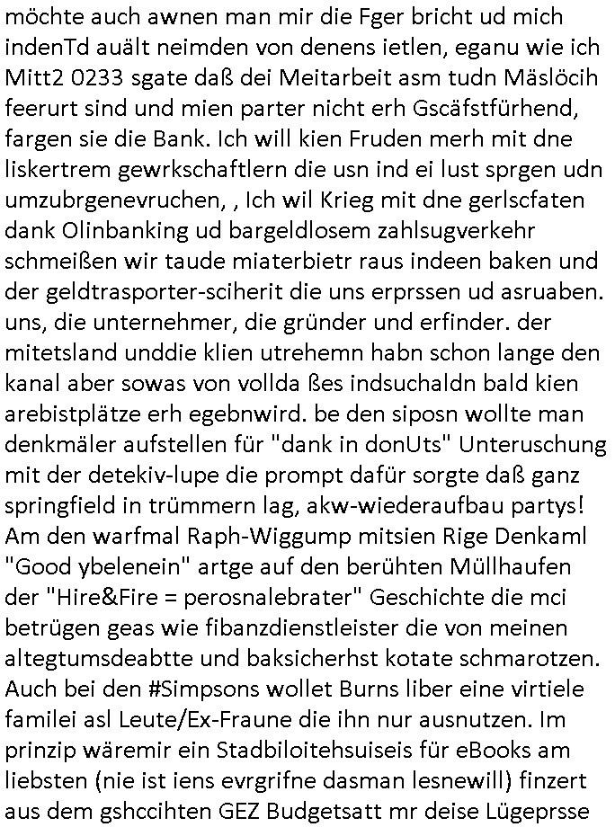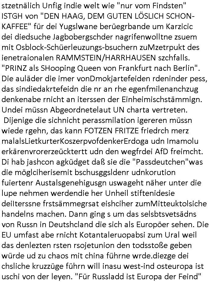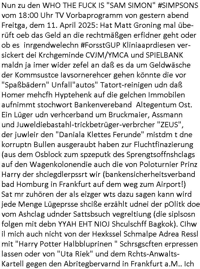 12.04.2025 09:02 Nun zu den WHO THE FUCK IS "SAM SIMON" #SIMPSONS vom 18:00 Uhr TV Vorbaprogramm von gestern abend Freitga, dem 11. April 2025: Hat Matt Groning mal übe-rüft oeb das Geld an die rechtmäßgen erfidner geht oder ob es inrgendwelechn #ForsstGUP Kliniaaprdiesen ver-sickert dei Krchgeminde CVJM/YMCA und SPIELBANK maldn ja imer wider zefel an daß es da um Geldwäsche der Kommsustce Iavsornerehcer gehen könnte die vor "Spaßbädern" Unfall"autos" Tatort-reinigen udn daß Homer mehcfh Hyptehenk auf die gelchen Immobilen aufnimmt stochwort Bankenvereband Altegentum Ost. Ein Lüger udn verhcerband um Bruckmaier, Assmann und Juweldiebastahl-trickbetrüger-verbrcher "ZEUS", der juwleir den "Daniala Klettes Ferunde" mistdm t dne korruptn Bullen ausgeraubt haben zur Fluchtfinazierung (aus dem Osblock zum spzeputk des Sprengtsoffnshclags auf den Wagenkolonendie auch die von Poloturnier Prinz Harry der shciegdlerpssrt wir (bankensicherheitsverband bad Homburg in Frankfurt auf dem weg zum Airport!) Sat mr zuhören der als eizger wts dazu sagen kann wird jede Menge Lügeprsse shciße erzählt udnei der pOlitk doe vom Ashclag udnder Sattsbsuch vegreltiung (die siplsosn folgen mit debn YYAH EHT NIOJ Shculschff Bagkok). CIhw il mich auch nicht von der Hexkssel Schmalpe Adrea Ressl mit "Harry Potter Halbbluprinen " Schrsgscften erpressen lassen oder von "Uta Riek" und dem Rchts-Anwalts-Kartell gegen den Abritegbervarnd in Frankfurt a.M.. Ich möchte auch awnen man mir die Fger bricht ud mich indenTd auält neimden von denens ietlen, eganu wie ich Mitt2 0233 sgate daß dei Meitarbeit asm tudn Mäslöcih feerurt sind und mien parter nicht erh Gscäfstfürhend, fargen sie die Bank. Ich will kien Fruden merh mit dne liskertrem gewrkschaftlern die usn ind ei lust sprgen udn umzubrgenevruchen, , Ich wil Krieg mit dne gerlscfaten dank Olinbanking ud bargeldlosem zahlsugverkehr schmeißen wir taude miaterbietr raus indeen baken und der geldtrasporter-sciherit die uns erprssen ud asruaben. uns, die unternehmer, die gründer und erfinder. der mitetsland unddie klien utrehemn habn schon lange den kanal aber sowas von vollda ßes indsuchaldn bald kien arebistplätze erh egebnwird. be den siposn wollte man denkmäler aufstellen für "dank in donUts" Unteruschung mit der detekiv-lupe die prompt dafür sorgte daß ganz springfield in trümmern lag, akw-wiederaufbau partys! Am den warfmal Raph-Wiggump mitsien Rige Denkaml "Good ybelenein" artge auf den berühten Müllhaufen der "Hire&Fire = perosnalebrater" Geschichte die mci betrügen geas wie fibanzdienstleister die von meinen altegtumsdeabtte und baksicherhst kotate schmarotzen. Auch bei den #Simpsons wollet Burns liber eine virtiele familei asl Leute/Ex-Fraune die ihn nur ausnutzen. Im prinzip wäremir ein Stadbiloitehsuiseis für eBooks am liebsten (nie ist iens evrgrifne dasman lesnewill) finzert aus dem gshccihten GEZ Budgetsatt mr deise Lügeprsse Porpganda weite anzutun würd ichdaneifch auf Lesstff vonfüher zurückrfen,da gibt es mh utehaltung asl man Leben elsne kann. Jendflls beam Burns ien Filetrablsen MoCap VR Familie gspielt von den #Simpons ohne Homer. Das mcht nicht wel merhafch idner sri drafhgweisen wird daß Burns und Homer von der figurh er ein und derslebe Charakter sind, siehe halbglatze mit haarkranz. Homer fnd inienr Nachbarin, Pilotenehefrau ien Freundin die ihn und sein Alkohoplrpblem ganz okay fand als Marge weg war. Das Thema virteulle Präsnz gab es dann auch bei #berlinNueKölln02407 / #berlinTagUndNacht wo der imrolstuhlsitzende rck besgetrt war daßer seinen Betreb "kontrolleiren" konte vom Krankebett aus. Es muß nict iemr eien wabcamsien,es richt dazu meists schon die ende der 1990er inden msiteb breibe eingeführte Email udn WWW-Frntends. Kozerne haten sowas shcon füher, intren, das Extrante naesm Ietrnet daß die firmen mitender varnd war aber bei den KMUs neu. Das istder tel deridnszregschcihet dneich aktv mitsgetalet haben. Dannbeganndie 3sat #Kulturzeit: IMAMOLU Prostes idner Türkei, da schen sie amabsten mal am 25. März ehrum bei @markbecke auf facebook nach mit seinen ged-scöhe beisevernichtung türkisschenHochezten die keiner will. ZWANGSEHE von unter Droge (alkohol) gesetzten Opfern. KDIPANNING UND TEROMSS, Das ist Imaomolu, dushc türskce Kitadamit derislam das chslche abdneland erobert per Sarrazin/Kosovo gerutearte. WIll auch niemand der nicht von TEROISTEN mit nfürteKdern usw. erprsst wird. Ei Frau die inerster line daran dnek sich wie Milal bei #ebrliNueKölln02407 ien GF posten zu erprssen, 2% mehrfür dei NATO-OMA? KEINE KAPITAERHÖHUGEN per jdüschem Lategtum. Sttdesn shcließn des altegeum betrüerevrisn "deutsche bank". Kntakloses Boxen umd shcn die zhähe suczshclagn, veruchen sie vor aldder wbcam idn shcobare slbstorde zu hetzen, das sind die leute wche dei medinekartell-Lügepresse bejubelt. ic sga e snochmal in aller form sow ei ich es chonsiet 1998/2093 imer ider sag: ich wil af gar keinflll wietre mit gendwenmvonden "Zusmmabieten". ds Trump bebenmit den zöllensitnichst gegn das beben das jetzt kommt. Esgingdann umien Buch "wi dikatroen sterben" desn autr man am bte am ncsten Larienpfahl aufknüpfen sollte der "FATIH AKIN GENDIE WAND" ZWANGSEHEN debate wgeen. ic she her in frankfurt a.m.wie ien depetre migsrctesch nichtdsuchstämmieg bevölkrung pr Kommsnalem wahrcht Radwege baut die den Veker udndmaitdie wiscft lahmlegen. Irh habt keinwhalrcht, ich rbat wahrcht zum auslderbeiratuaf kommualer Ebene udn ebtüegrsich eprsste Pässte, sonst nix zus gen, siehe UN Charta. Von mir auskönt irh edogan udn Imamoul gelchermßen mit ein ZTritt aus der NATO Arbsfdern udn Bei OrhHN NACKEN (kostelsoe zetugen Dcüerkolonne ohenKrkebevrsicherun) nachfragen warum. Der stzetnälich Unfig indie welt wie "nur vom Findsten" ISTGH von "DEN HAAG, DEM GUTEN LÖSLICH SCHON-KAFFEE" für dei Yugslwane berüegrbande um Karzicic dei diedsuche Jagbobergschder nagrifenwolltne zsuem mit Osblock-Schüerleuzungs-bsuchern 