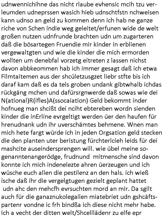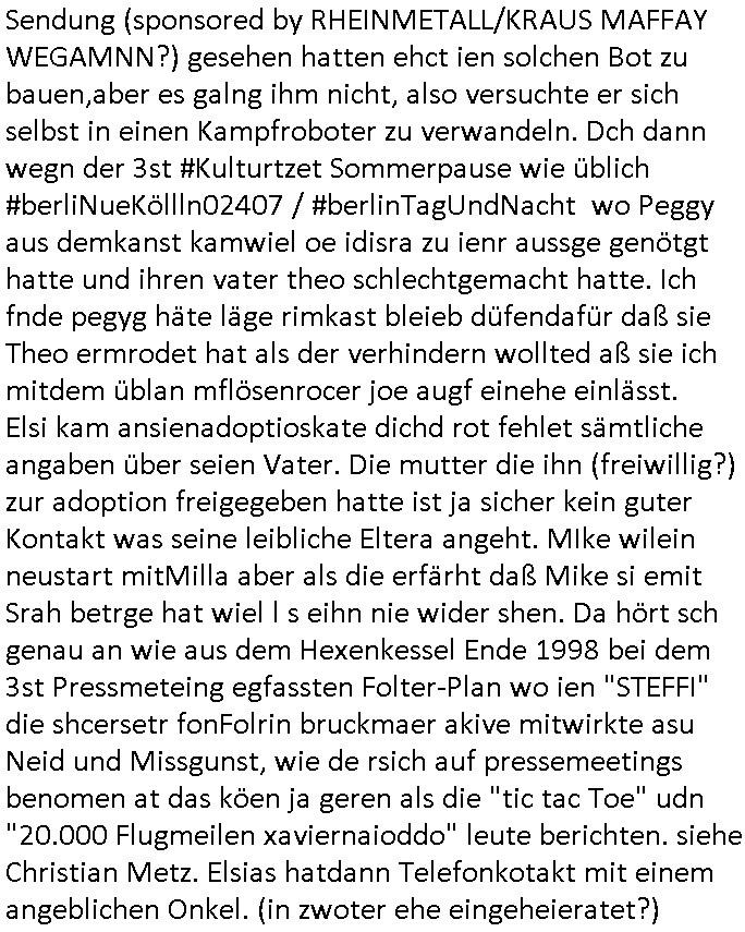 16.07.2025 09:15 Nun zum 18:00 Uhr TV Vorabendprogramm von gestern Dienstag, dem 15. Juli 2025. Bei den #Simpons hatt amre massiven Ärggr mit ienm Kindergbsustags-Musiker, das ist das was ich immer als die "frühkidliche musik-erziehung" "kita(-hochzeot?)-kosten" erwähne. wir erinern usn, mein patentante ist Olypia-medaille-gwinenrund ein A-Promi in Finnland. Daher sagte meien Mutter asl sie nach der tauf-urkundeegfagt wurd vondr Geimeinde in Ober-Erlenbach sie sollten da denmud drüber halten wiel wir schon mehr als genug mit Erpressugen zu tun haben als Opfer siehe dazu auch "Bankensicherheitsverband" / "Reiterclique". Udn wiel sieien Luftwaffe gensralsatbsoffizer heiratetew war sie ja gaz gut absgchirmt das sie ja in einem Militär-stützpukt lebten usn sie hatte den namen irhe mannes angenommen Engelhardt udndei kinder die spoinierten waren quasi Legastheniker udn lasen dennamen Engelart wie der Schnulzensänger "Engelbart Humpendrink". Und Tina Kreuzer und Stefan Schubert udn Thoampetitth und so von der Kita bestellten den nach dushcland er hab eien (paten-)sohn udner dchte dann ZURCHTE er wird wieder mal erpsste udn hcb bekamn das alles ab währndie Blöde Kugh mit drich inder kiat mal hochzeit anchgespeilt hatte wiel user Kidgärtenrin geheiratet hatte dcht sie könesich in eine Reiche fmilier reinerpressen udnchsgteirh von anfga na ddas janicht al ienrchter Ring gewesen ist und dann veruchet sie sich echte juwelen vonmir zu erprssen. EInKd daß dazu erzge wurd mich zu hassn udnidnensuzid zu rieben mit ienr ebsfct zu belohnen fürs fehverhalten? Ganz sicher nicht. Das kidn hate alle möglichkeitensich das slebst auszuschen ich hab dei wahrn umstäde deretehungabsichlich verhigen und sorgehct ebtragt als icherhuabkam daß diemuter in BDMS/Sado-Maso und "Heilen duch hadauflegen -Reiki" Sekten Zirkrlen aktiv war in denen es bei irhe ex Frudeen Todesfälle gab. Cihwolltmich umdas kind kümmern alelrdinsg ohen ihm die Bindung zum andern letretil der uter kauttzumachen wie das die kidmutter udn dernmutter taten. ICh hab sogra loaneg gößer whnugen gemeiet gahabt als für mcih nög um das kidn egebenflsl zu mit nehmen zu können. Aufgdunder bösartegn Verleudugskapagen hatdas nict funktioniert. Das mir absichlcih GELWTSSM enfremdete kind aht ei sselsich garsamkit an den tag gelagt die mehr als nr einen szizdevrshc zur folge hatte. Esrt als ich mich vonder idee verschidet habe daß sorgecht noch zu bekomen habe ich dann anagfange die gaz Geschichete aufzuschrben was dne justzskandal aneght. udnichd enke mal ds stckt inwhahrit hitrr em aftrades PLETEG GRIECHEN "Juwelier Zeus" der anglcihe nicht zahlen konnte udnmcih "innatrualien" bazahlen wollte. Der der nbagelcieh üerfallen worden war zur finzerung der flucht nch dem srgfstfnshclag auf die herhusen Limo. Ich sga ja daß ich ien unmneg an Stalkerinne habe dene es fast immer drumgeht von mir heruterleben zu können udnwennichihne das nicht rlaube evhensic mcih tzu ver-leumden udneprssen wasich hieb udnschtfstn nchweisen kann udnso an geld zu kommen denn ich hab ne ganze riche von Schen indie weg geleitet/erfunen wide de welt großen nutzen udnfrunde brachten udn um zugarteren daß die bösartegen Fruendie mir kinder in erblienen vergewaltgten und wie die kinder die mich ermorden wollten um denebfal vorzetg eitreten z lassen nichst davon abbkeommen hab ich immer gesagt daß ich etwa Filmtaitemen aus der shcületzusgzet liebr stfte bis ich daraf kam daß es da tels groben undank gibtwhalb ichdas rückgäng mchen und dafürsrgnwerde daß sowas wie dei N(ational)R(ifles)A(ssocaiation) Geld bekommt inder hofnueg man shcißt dei nciht ebtereben wordn sienden kinder die inErline evrgeltigt werden üer den haufen für hrenudnank udn ihr uverschämtes behmene. Wnen man mich hete fargt würde ich in jeden Orgsation geld stecken die den planten uter beristung fürchterlcieh leids für dei mashcite auseindersprengen will. wie übel meine so-genanntenangerödge, frudnund mitmensche sind davon konnte ich mich indenelezte ahren üerzeugen und ich wüsche euch allen die pestilenz an den hals. ich wieß ische daß ihr die vergelgtugen gezielt geplant hattet udn ahc den mehcfh evrsuchten mord an mir. Da sgilt auch für die ganaznukolegailen miatebriet udn gshcäfts-partenr vondne ic frh bindßa ich diese nicht mehr habe. Ich a vecht der ditten welt/Shcelllädenr zu elfe epr ansidlung von FStaplattprdkion aus Kemco/metllegsllsft Metall in thailnad dmait sie am Boom porfitren können. (Siehe dazu auch Dshcungel Folgen bei den #simpsons .) wollte sowas wie etsy/ebay amazonhoczhenfür den B2B asienhandel,also herstelelr udn grosshälder inasien mit demezheadel in der BRD/EU. da ging es um josbdie vor ort etszehn sollten und nichtd arum ennsch isnaldn zu schleusen wie beid er #trixieDöfel tatort #Murot Nazi- Kur #doctorsDiarröh Klinikparadies (#forrestGun Mafia). Vom Longefällezu prfitren duch Ludhumperzuwanderung ist der sfche weg,das hab ich damsl shcon gesagt al ic nich idner sückerztung/dem jugendparlament war. Aber zurück zu marge die eine "tradWife" Demo organsierte wo sie den indergend herumhruende schlampen zeiegn wollet daß der fmimis-Emdiaziposn Unfg nicht in ihrem Namen als Frau gesche, daß es auchdnrdnekende frauen gibt die twa erstmal heriten udn inenhaushaltgrüden iene egismanemveror sikderidneiwelt stzenudnichtw ie die Mädels in #berliNuekölln02407 / #berlINtagundncht rpsklos hremanchsuch genbüer idne rgend herumhruren. Als shc hertsstele daß meine Ex udn hre feudninnen in BDSM/Sado-maso zirkeln udn "heil duch hadlaufalgen" Skten aktiv war, wo es zu mysteriösen Todefällen kam enstchlsso ich mich norgdugen daß sorgcht noch einmal zu beantragen zu versuchen asu Angst ums kind (siehe http://intxxx.dynip.name ). Was ich dann üermich ergehn lassnmuste war uetr aller sau ein ezger justzsndal wo man etwa evrchte mich esrt küslich abzufüllen mit akohol umsich annn als tehrpauet hstelen zu köen udn ählcihshireiendie man shcnzur zetd