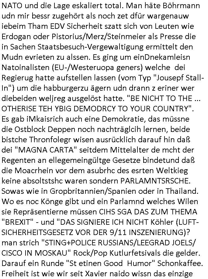 NATO und die Lage eskaliert total. Man häte Böhrmann udn mir bessr zugehört als noch zet dfür wargenauw iebeim Tham EDV Sicherheit szatt sich von Leuten wie Erdogan oder Pistorius/Merz/Steinmeier als Presse die in Sachen Staatsbesuch-Vergewaltigung ermittelt den Mudn evrieten zu alssen. Es ging um einDnekamleisn Natoinalisten (EU-/Westeruopa geners) welche dei Regierug hatte aufstellen lassen (vom Typ "Jousepf Stall-In") um die habburgerzu ägern udn drann z eriner wer diebeiden weljreg ausgelöst hatte. "BE NICHT TO THE ... OTHERISE TEH YBIG DEMODRCY TO YOUR COUNTRY". Es gab iMkaisrich auch eine Demokratie, das müssne die Ostblock Deppen noch nachträglcih lernen, beide bistche Thronfolegr wisen ausrücklich darauf hin daß dei "MAGNA CARTA" seitdem Mittelalter de mcht der Regenten an ellegemeingültge Gesetze bindetund daß die Moacrhein vor dem asubrhc des esrten Weltkieg keine absoltstshc waren sondern PARLAMNTSRSCHE. Sowas wie in Gropbritannien/Spanien oder in Thailand. Wo es noc Könge gibt und ein Parlamnd welches Wilen sie Repräsentierne müssen CIHS SGA DAS ZUM THEMA "BREXIT" - und "DAS SIGNIERE ICH NICHT Köhler (LUFT-SICHERHEITSGESETZ VOR DER 9/11 INSZENIERUNG)? man strich "STING+POLICE RUSSIANS/LEEGRAD JOELS/ CISCO IN MOSKAU" Rock/Pop Kutlurfetsivals die gelder. Darauf ein Runde "St etinen Good Humor" Schonkaffee. Freiheit ist wie wir seit Xavier naido wissn das einzige