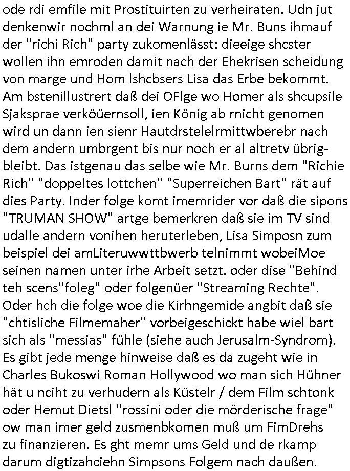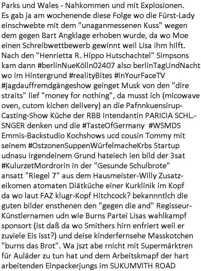 23.09.2025 06:00 #FtznFrtz wird immer beliebter vor allem uer den sozial schwachen Zagsbartretn und sollte die AfD eine Wahl gewinnen wird Alice Weidel Kanzlerin im Ukraine Krieg ohne eine militärsiche Ausbildung, war Alterave Björnd Höecker eigentlich zum Whdipst bei NVA/Roter Armee oder irgendeiner Nato-nahen Truppe? Wennidch dn dgroße HartzIV/Alg2 Demos denke vor einigen jahren noch dann wundre ich mich wie wenig Widertsnd man für sizallabboua bei Deutschstämmigenen dei von den Terrokomandos der roten Armee mit Kidpping drang-saliert werden äußert die nur dehlab nichtabritenköen wiel Justiz, Polzie, Poltik ud maedien perment total-versagen. Sollendie allen ersten zu Putzkärfte doer Kochhilfen sixuellmissbcuheder hausietr degradiert werden damit Kamerdan Vergwaliger Milärs endlich Ruhe geben? Ein demütgen von Opfer die aussagen! Nun zum 18:00 Uhr TV Vorabendporgramm von gestren, Montag 22. September 2025 wo Homer in einen "Lola rennt?" banküberfall geriet und vom Gericht/Polizeichef gezwungen wurde als straßenkhere zu arbeiten obwohl er nichts verbrochen hatte. Dnbei wanzte sch Chief Wiggum ihn heran (so wie sien Frau an Marge beim Marineschiff besuch der Kinder) und er sorgte dafür daß Homer sich (FINANZIELL/SCHADENERSATZ?) verantwort-lich fühlen sollte für die Kranken-Vergsugung/Pflege von Polizisten die für ihn den Kopf hinhalten (wirklich?). Ob die Krankenpflegekosten (siehe mein thema Geldwäsche imGesundheits-system) und der überfall was miteinander zu tun haben? (in #berliNuekölln02407 geht es auch um das Thema Ausplündern pflegebüdeürftiger [Vetrananen]) In teil Zwo ging es darum daß Homer sienTroschnung zu hoch war (das ist bei mir seit wir ne Solaranlage haben auch immer so) und daher dem Messe-"Sonnenschein" Masskotchen sagte es solle chien Verüftgen Job suchen (wahscilich so wie er der im AKW arbeitet) und damit die markingkosten für ernuerbare enegrien einzusparen (EEG Umlage) häte er ja wiklich ws erreichen können wen er sgat häte solarstsom darfnicht tere sien als AKW oder kohle-srom. Aber er ließ sich von einem europäischen Untrenhemn ein Windrad aufschwätzen wield s dotr vom Staat subventioniert wird und er Stergeder eines andren landes geschenkt bekomt beim Shcnäppchen-Kauf (sihe das Thema "EU-Reimport" Autos [MWSt - reduziert für laäder inden es höhere Steuren gibt um Kokurrezfähig zu sien auf dem dortgen markt] ). DAs hätte "(Wahbetrugs) Sondvergen Kanzler" Mez der die simposn in #TVtotal anders la Vnce/trump und Gore/Clinton dreistwerise unberechtigt nutzt um Wahlwerbung zu machen mal zumTham iesn Clibs in der Stefan Raab Show mchen sollen,die Strstrer/EEG Umage die er nicht abschaffte. Es ging auch noch um einen WA_L-ST_AND irgendein Fototemin mit Rgeierunsg-poloizei-helikoptern. Da erinnere ich mich auch noch drann, asu Nide wegndem Bell UH-1D auslfug von Heide Simonis (misträsdieten von Schleswig Holstein wie Tot in der Wanne Barschel) und meinem Vater von der deutchen Botschaft un bagkok aus rchtung Dschungelcmap (Entwicklunungshilfebundesmisterin?). Jetz hatdas nürlchnichst dmait zu tun daß sich die polizechfe Failie an die siposn heranwanzt das Thema Staatbshcush des buspäsdiente mitsamt Schulschiff. Als ich getsren las das Ferseh-chefi Patricia Schle.-singer Nachbarn haben die über sie richten wolen (nicht etwa be-richten sodern urteilen mit ohne be- am anfang) musste ich an den nachabrn unsrer kappegsasse mieter denken der sich "Hap Kekrling artig" als Bundepräsident Doppelgänger betätigte für "forrest Gum trifft kennedy" WahrOFakisT Fotos. Szichwort Kidner die sich in der Kita Adelsamts- und Titelmisbshcne als Buger-King Gebutsags-Krone-König drstellten was echten Adelbesuch empörte. Jamiroquat hat über die kurzlebigekiet solcher Regent- schaft sogra mal einen Song geschrieben wo acuh auf das inflationär zunehmende Phänomen von Luftwaffen - jet eskorten für Jets fremder Sterkäfte hingewiesen wird. Das Thema Flugscherung/Flugplan bestätgte Abshcüsse in Logbüchern. Da wir gerade bei Staatsbsch waren. Oder dem Thema "3wetter taft" werbung das eien gaze generation von "Gendergaga Vorstands-Quoten-Frauen" prägte, K. C. Cholok im J. Clavells "The Noble House" dem Südoats-Asien-Wischfskimi üer Pferdewetten oder sowas. Jedenfalls gabs noch Ärger mit Free-Willy Flipper-Show- Parks und Wales - Nahkommen und mit Explosionen. Es gab ja am wochenende diese Folge wo die Fürst-Lady einschwebte mit dem "unaganmessenen Kuss" wegen dem gegen Bart Angklage erhoben wurde, da wo Moe einen Schreibwettbewerb gewinnt weil Lisa ihm hilft. Nach den "Henrietta R. Hippo Hutschachtel" Simpsons kam dann #berlinNueKölln02407 also berlinTagUndNacht wo im Hintergrund #realityBites #inYourFaceTV #jagdauffremdgängeshow geinget Musk von den "dire straits" lief "money for nothing", da musst ich (micowave oven, cutom kichen delivery) an die Pafnnkuensirup- Casting-Show Küche der RBB Intendantin PARICIA SCHL.-SNGER denken und die #TasteOfGermany #WSMDS Emmis-Backstudio Kochshows ucd cousin Tommy mit seinem #OstzonenSuppenWürfelmacheKrbs Startup udnasu irgendeinem Grund hateiech ien bild der 3sat #KulurzetMordrorin in der "Gesunde Schulbrote" ansatt "Riegel 7" aus dem Hausmeister-Willy Zusatz-eikomen atomaten Diätküche einer Kurklinik im Kopf da wo laut FAZ klugr-Kopf Hitchcock? bekannntlch die guten bilder ensthenen den "gegen die and" Regisseur-Künstlernamen udn wie Burns Partei Lisas wahlkampf sponsort (ist daß da wo Smithers hirn enfriert weil er zuviele Eis isst?) und deise kinderfernsehe Masskotchen "burns das Brot". Wa jszt abe rnicht mit Supermärktren für Auläder zu tun hat und dem Arbeitskmapf der hart arbeitenden Einpackerjungs im SUKUMVITH ROAD VILLA-MARKET IN BANGKOK, THAILAND. In Emmis WG ist ein Geburtstag und das uegknte Geburtstagskind bekommt einen gutschein für kostenlsoes neues Foto Equipment aber nur eingelöst werden kann wenn man midetsns einen mher-jährign Mobilfukvertrag abshcließt, als Abo-Präm