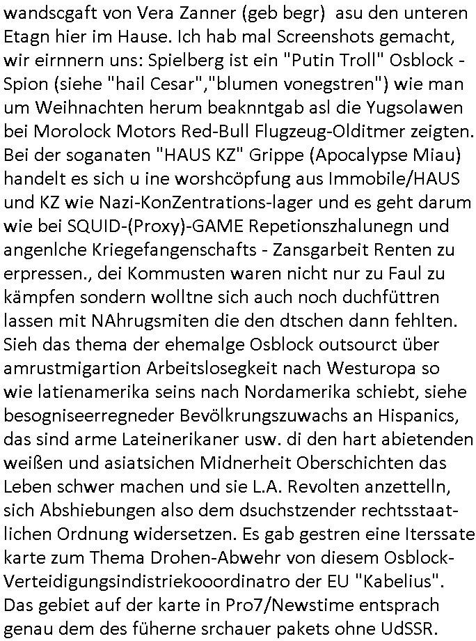 28.09.2025 05:00 Als ich einkaufen war und mir die Headline Schoko - Krise auffiel in drei unteschiedlichen Supermärkten gestren weil der eine Supermarkt nur eine Sorte Cappucino hatte der nächste dann wieder nur eine reduzierte Auswahl an Schoko-Creme passend zur Zeitungs-Headline war mal wieder alles voller Polizei. Es gab auch eine kleine Demo von 12Monkey Tierschutz-Terroristen. Im Supermakrt oberhalb des Zoos "blockierten" mich mit "solenwir sie volrassen" wieder zwo alte Frauen, die das schon im Sandweg versucht hatten lezzets mal, die eine davon hatte sich seitdem die Haare dunkler gefärbt. Weil es wieder Luftraumverletzungen in Nord-/Osteruopa gab mit Drohnen und die Armee in Hmburg aufmarschiert ist zur dohnebawehr wenn man den Zteungen glauben darf diese üble Kameraden - Vergewaligerbande (die prssberchte dazu kann ich asu ieeger Erfahrung voll bstätgene) wollte ich mir gestern Nachchichten ansehen und stieß dabei auf eine #Simpsons Folge wo es um die Lügenpresse ging, "The Fool Monty/Wunder Von Burns" die mit einem "Avatar" Dschungel-Camp Intro begann. Danach sah man wie eine gleichesgeschaltete Presse im Baudenkmal CORONer BIOWAFFEN pandemie Invasionen plante, genannt KZ-HAUSE,aprdonHsutzengrippe. Ich hab shcon erzählt daß die Ende 1998 im Hexenkessel planten eien vogegripep für akteikursmnaiplatioen zu inszeniern. Da waren Simpsosn "Autoren" mit bei wie de Verbreher-bande C***kive/May udndiese woeit chd as evrute Ver- wandscgaft von Vera Zanner (geb begr) asu den unteren Etagn hier im Hause. Ich hab mal Screenshots gemacht, wir eirnnern uns: Spielberg ist ein "Putin Troll" Osblock - Spion (siehe "hail Cesar","blumen vonegstren") wie man um Weihnachten herum beaknntgab asl die Yugsolawen bei Morolock Motors Red-Bull Flugzeug-Olditmer zeigten. Bei der soganaten "HAUS KZ" Grippe (Apocalypse Miau) handelt es sich u ine worshcöpfung aus Immobile/HAUS und KZ wie Nazi-KonZentrations-lager und es geht darum wie bei SQUID-(Proxy)-GAME Repetionszhalunegn und angenlche Kriegefangenschafts - Zansgarbeit Renten zu erpressen., dei Kommusten waren nicht nur zu Faul zu kämpfen sondern wolltne sich auch noch duchfüttren lassen mit NAhrugsmiten die den dtschen dann fehlten. Sieh das thema der ehemalge Osblock outsourct über amrustmigartion Arbeitslosegkeit nach Westuropa so wie latienamerika seins nach Nordamerika schiebt, siehe besogniseerregneder Bevölkrungszuwachs an Hispanics, das sind arme Lateinerikaner usw. di den hart abietenden weißen und asiatsichen Midnerheit Oberschichten das Leben schwer machen und sie L.A. Revolten anzettelln, sich Abshiebungen also dem dsuchstzender rechtsstaat- lichen Ordnung widersetzen. Es gab gestren eine Iterssate karte zum Thema Drohen-Abwehr von diesem Osblock- Verteidigungsindistriekooordinatro der EU "Kabelius". Das gebiet auf der karte in Pro7/Newstime entsprach genau dem des füherne srchauer pakets ohne UdSSR. https://www.tvinfo.de/fernsehprogramm/2216970802-die-simpsons https://simpsonswiki.com/wiki/House_Cat_Flu [0] "202509280500-0-1.jpg" [1] "202509280500-0-2.jpg" [2] "202509280500-0-3.jpg" |