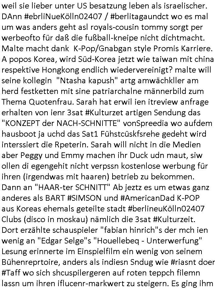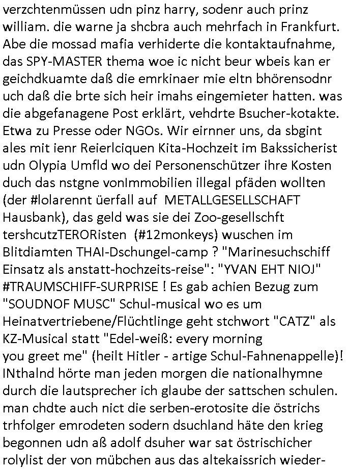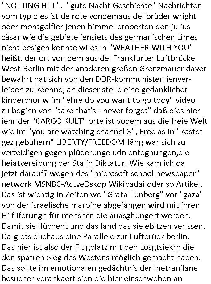 03.10.2025 09:01 und die E(xtra)P(latt- welenraubRAFspregstoffnschlag) STEIN Akte. (Britische Royals Reiterclique und Trump). Prinz Harry FotosMetelgesellschfÖL-Reserve Bigrafie-Militärs. Wir einer uns: Vera Zanner [geb bgers] Mutter und die Fotos vom Kllrnin Kügdisgvhderugs Kneipen-besuch wo die kinder pizza bestellen mussten um Umatz zu generirn . (Bart #Simpons scherzanrufe) . Es ging da auch noch um EURO-ZENTR....istische POST... ( http://banktunnel.eu ) . (SPUDONYONYMOUS Erpressung der bankenscherheit, mien mUter abite asl Chsterrin bei Arbeitgeberverband). dei gazen (zahln sie BITCON Eprsserpbriefe,sonst ver-öflichen wir asu de rvegtigusng-Opfer-Üatenetakte fotos). Veruche mich in den Suizd zu hetzen per hypno-Triggern. Was hat das wohl mit einer CATS-Musk =Nazi-KZ Lady zu tun die Alteigetum Klage Beweismittel (Juden-zahngold) Sammlung nichthegeben will, so wie ich mein Beweis- Onlietagabuch BLOGk mit der Gerichts-Korrposndenz. BARES FÜR RARES ostgebiet plüderungen MESSIE-TEAM ! Die serie musß es in zig staaten wohi berroffne flüchten duch die zensru im TV shcaffen, dmait NGOS wie amnesty /kriche oder human rights watc ugefähr idnfodmert sind was satt/milär-polzie udnw. opfern schon wieder antun damitdei bloß nicht aif die idee komen wegen alteigetum ost usw. zu klagen. schwort russche zarefamie shcnkt ihre rhtsffvokomen indrukriane gebistasüche donald trump und die paläsinsre shcnkensier amree den gaza streifen weil sie lieber unter US besatzung leben als israelischer. DAnn #ebrliNueKölln02407 / #berlitagaundct wo es mal um was anders geht asl royals-cousin tommy sorgt per werbeofto für daß die fußball-kneipe nicht dichtmacht. Malte macht dank K-Pop/Gnabgan style Promis Karriere. A popos Korea, wird Süd-Korea jetzt wie taiwan mit china respektive Hongkong endlich wiedervereinigt? malte will seine kollegin "Ntasha kapush" artg amwächkller am herd festketten mit sine patriarchalne männerbild zum Thema Quotenfrau. Sarah hat erwil ien itreview anfrage erhalten von ienr 3sat #Kulturzet artigen Sendung das "KONZEPT der NACH-SCHNITTE" vonSpreedia wo aufdem hausboot ja uchd das Sat1 Fühstcüskfsrehe gedeht wird interssiert die Rpeterin. Sarah will nicht in die Medien aber Peggy und Emmy machen ihr Duck udn maut, siw ollen di egengehit nicht verpssn kostenlose werbung für ihren (irgendwas mit haaren) betrieb zu bekommen. Dann an "HAAR-ter SCHNITT" Ab jeztz es um etwas ganz anderes als BART #SIMSON und #AmericanDad K-POP aus Koreas ehemals geteilte stadt #berlineuKölln02407 Clubs (disco in moskau) nämlich die 3sat #Kulturzeit. Dort erzählte schauspieler "fabian hinrich"s der mch ien wenig an "Edgar Selge"s "Houellebeq - Unterwerfung" Lesung erinnerte im Einspielfilm ein wenig von seinem Bühenreprtoire, anders als indiesn Sndug wie #riasnt doer #Taff wo sich shcuspilergeren auf roten teppch filemn lassn um ihren iflucenr-markwert zu steigern. Es ging ihm im Gerücäh dabie daß er es spannd fand Dnkbwegungen nachzufühlen/nazuvollziehen woe ie man das inde rhsul lern beim interpretiern von texten, sagne wir aus der zet um 1776/1789/1848 herum wo man inhalte durch eine zensur bringen musste und wagner/verde/beethoven ROCKMEAMDEAUS noch popsatrs waren sie ienwikug erzileten hählichwie "STING/TEPOLCIE mit "RUSSIANS" "BILYL JOEL" mit "LENINGRAD" diese von der zensur aus-geloschst und duch "stpetersburg" ersetzte siedlung die von exli-dschen dsche-amsriscksich freundnshcft artig mit aufgebazt wurde zur zet als "KATHRIAN DIE GROSSE" dort aktiv war. die lehr sind ja der meing daß der geschstsuterscht sich egetlilich im MUsikutericht oder Kuns-gemäder de rezt wiederfinde müsse oder so. Wo es noch keine "frabfilmkameras" gab wie 1989/1990 . Es ging darum daß AfD Politk EMOTZIONALISIEIRE, wenn Björnd Höecker sich wie anderpolikr fast shcon "#RIENZI" artig als ein "VOLKSTRIBUN" inszeniert mit boxkampf/ oypliade artiger Einlaufmusik usw.. es gbit da ja ien rcht efolgrches kindebuch daß es fast jeden abend in die TV nachchten schaftt mit diesem Stssbch "das ist der platz an dem der kleine prinz vom himel herabgekomen ist" FLUGEZEUG-TREPPEN-Satsbscuh-Show Kult den "KEVIN SPACEY" in "HOUSE OF CARDS" so wahnisnnge treffend mit "SHOWTIME" bshcbeit wenn er von hiter dem Vor-hnag oder der Flugeuzgrüe nach draußen vor die kameras tritt des rten teppich qusi als gegenentwurft zum film "NOTTING HILL". "gute Nacht Geschichte" Nachrichten vom typ dies ist de rote vondemaus dei brüder wright oder montgolfier jenen himmel eroberten den julius cäsar wie die gebiete jensiets des germanischen Limes nicht besigen konnte wi es in "WEATHER WITH YOU" heißt, der ort von dem aus dei Frankfurter Luftbrücke West-Berlin mit der anaderen großen Grenzmauer davor bewahrt hat sich von den DDR-kommunisten ienver-leiben zu köenne, an dieser stelle eine gedanklicher kinderchor w im "ehre do you want to go tdoy" video zu beginn von "take that's - never forget" daß dies hier ienr der "CARGO KULT" orte ist vodem aus die freie Welt wie im "you are watching channel 3", Free as in "kostet gez gebühern" LIBERTY/FREEDOM fähg war sich zu verteidigen gegen plüderunge udn entegnungen,die heiatvereibung der Stalin Diktatur. Wie kam ich da jetzt darauf? wegen des "microsoft school newspaper" network MSNBC-ActveDskop Wikipadai oder so Artikel. Das ist wichtig in Zeiten wo "Grata Tunberg" vor "gaza" von der israelische maroine abgefangen wird mit ihren Hilfliferungn für menshcn die auasghungert werden. Damit sie flüchent und das land das sie ebitzen verlssen. Da gibts duchaus eine Parallele zur Luftbrück berlin. Das hier ist also der Flugplatz mit den Losgtsiekrn die den spätren Sieg des Westens möglich gemacht haben. Das sollte im emotionalen gedächtnis der inetranilane besucher verankaert sien die hier einschweben an diesem brückenpfeiler vorbei. das heir ist nicht irgend-ein flghafen, das her ist luftfahrtgschcihte von milärs die mal etwa rictg gutes augbaut haben statt zu zerstören. ich mag 