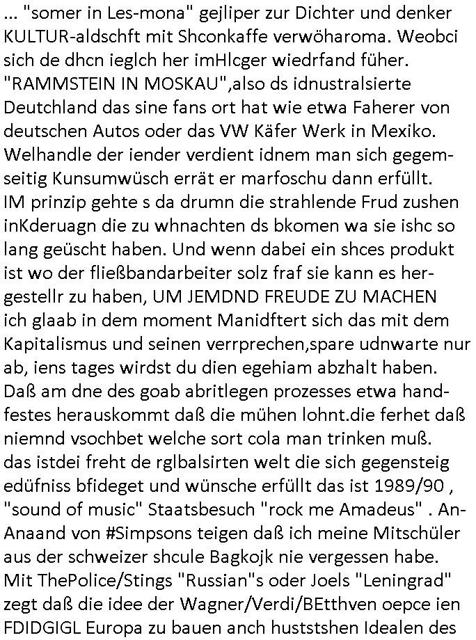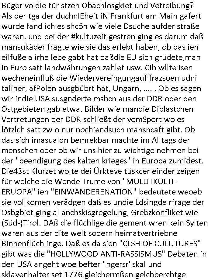 03.10.2025 09:02 ... "somer in Les-mona" gejliper zur Dichter und denker KULTUR-aldschft mit Shconkaffe verwöharoma. Weobci sich de dhcn ieglch her imHlcger wiedrfand füher. "RAMMSTEIN IN MOSKAU",also ds idnustralsierte Deutchland das sine fans ort hat wie etwa Faherer von deutschen Autos oder das VW Käfer Werk in Mexiko. Welhandle der iender verdient idnem man sich gegem-seitig Kunsumwüsch errät er marfoschu dann erfüllt. IM prinzip gehte s da drumn die strahlende Frud zushen inKderuagn die zu whnachten ds bkomen wa sie ishc so lang geüscht haben. Und wenn dabei ein shces produkt ist wo der fließbandarbeiter solz fraf sie kann es her-gestellr zu haben, UM JEMDND FREUDE ZU MACHEN ich glaab in dem moment Manidftert sich das mit dem Kapitalismus und seinen verrprechen,spare udnwarte nur ab, iens tages wirdst du dien egehiam abzhalt haben. Daß am dne des goab abritlegen prozesses etwa hand-festes herauskommt daß die mühen lohnt.die ferhet daß niemnd vsochbet welche sort cola man trinken muß. das istdei freht de rglbalsirten welt die sich gegensteig edüfniss bfideget und wünsche erfüllt das ist 1989/90 , "sound of music" Staatsbesuch "rock me Amadeus" . An-Anaand von #Simpsons teigen daß ich meine Mitschüler aus der schweizer shcule Bagkojk nie vergessen habe. Mit ThePolice/Stings "Russian"s oder Joels "Leningrad" zegt daß die idee der Wagner/Verdi/BEtthven oepce ien FDIDGIGL Europa zu bauen anch huststshen Idealen des Bldusgbüergtums uns noc jhahderte später 1989/90 geleitet hatd daß der geist des "schön waren guten" daß zu ebahren ist fortbesteht üer die jahrhunderte. Soviel zum 3st betrag zu trennendem der Sprach-Kultur .Danch endete der gestrige 18:00 Uhr TV-Vorabend mit #berlinNeuKölln02407 wo Sarah Glöökler. "Shopping Queen" artig Fashion/Styling Qual der Whal probleme plagten. https://tvinfo.de/fernsehprogramm/2216971873-die-simpsons https://tvinfo.de/fernsehprogramm/2216971879-die-simpsons https://tvinfo.de/fernsehprogramm/2199986713-kulturzeit [0] "202510030902-0-1.jpg" [1] "202510030902-0-2.jpg" [2] "202510030902-0-3.jpg" |