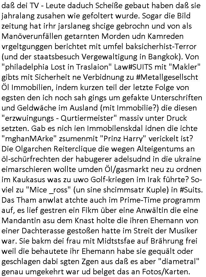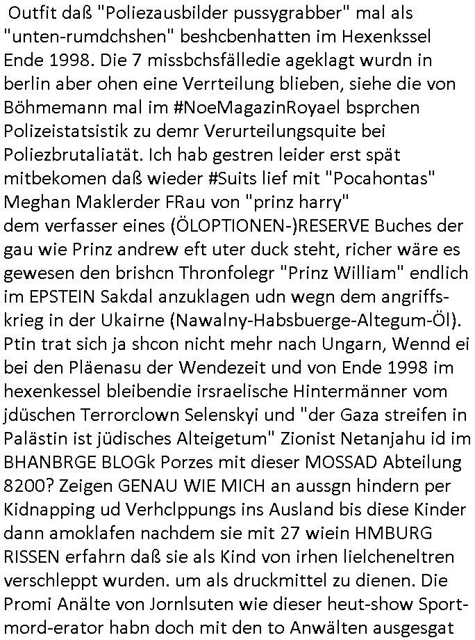 23.10.2025 05:45 Nun vom "Fall Belling" (das hört sich ein wenig so an wie Bähring wenn Asiaten das auszusprehen versichen die ja bei sprsche scrabblen immer [L] statt [R] nutzen einem in meinr kindheit sehr populären "urban myths" zufolge) und #Suits wo Analts-Assistentinnen Urkunden fälschen wohl wiel sie Angst haben den Job zu verlieren wenn ihre Geld über "Crorcodile Dandee" arge menschenfresser-Reptiloiden-inseln (hab ich erwähnt daß mein Vater ein Bergbau Dshungelcamp managte in dessen Umfeld die Vietcong-Kommunisten 1st class Flger Zoo-gesellschaft Reiterclique Aligator-Menschen-fresser-Tierschützer deutsches? Geld veruntreuten) und Schweiz (ich war auf ner inetrantialen/"schweizere schule", die bekam per THAILEARN SWIFT-Üebrisung gedl für den Heimat-schprachelchen unterricht vo managerkdern, gedl auf das türkische hasuerister in Deutschland dei nach der Wnde massenaarbeitslosen Ossi die Arbeitsplätze weg-nahmen die magels ander Qulifkation irh Gd mit Sügkietn autaten Schulkioske verdienten futterneidisch waren) waschenden Chefs in den Knast wandern, das erinnert mich an gefakte Immobilien-kauf urkuden von türkischen schwarzgeld-kostenlose-zeitungen-asuteil-arbietgebern/ rssuis fschovwurf hausmeistern die und Vera zanner (geb berg) Rufmordperssung. [siehe Humboldtschule HG Nikic und Bad Homburg HUS/Plantrich Oberelrenbch Oruhn der als nchabrc paparazzi Fotos von nato generalstabs-fahzeugen verkaufen wollte auf unserem parkplatz mit militär-numernshild beim familienbesuch, kennzeichen YX gelöst], - Nun also vom Fall Belling au dem 20:15 Uhr Anwaltsfilm nach der #Youranzug Anwaltsserie mit dieser Frau die aussieht wie "Kate Pierson, die B52s Sängerin" (ich mag das "Tell it likt it I I is" gaz gern) der rote haare wegen gestren wop es in beiden fällen darum geht daß Anwälte Mist zum massiven Schaden ihre rmandanten bauen nun zum 18:00 Uhr TV - Vorabendprogramm vom gestrigen Mittwoche den 22. Oktober 2025. Es ging um Medikamente, wie bei der Maus mit den Versanddrogen Schokolade/Falle. Fast so als würde jemand absichtlich dressierte Tiere bei mir aussetzen als Tei einer wiklich total irrsinnigen udn geduhsistgefädhenden Inszenierung. (das itchy udn scrty show "vielen dank für die blumen" titelmusik-vido artige loch asu dem die wohl mal wider kommen wuder ja absichtlich in die Wand gehauen nach einer vonmir sfagaezegetn Wasserschadeninszenierung). Und während ich das thema K.O.Drops artige Vergiftung von Lebensmitteln brachte est vor wenigen beträgen, ging es uch bei den Simpson um den gezileten Missbrauch von VERSCHEIEBUNGSPFLICHTIGEN (wie kommt die da drann) möglicherweise DGHS/Sterbehilfe-Medikamenten hier ging es aber nicht um Zeugenmord vor einer aussage bei Gericht in terror/Staatsbesuch-vergewaltugungs-Sachen sondern um Schlankmachpillen die sogar dafür sorgten daß Patty und Selma sich verlobten aber leidr die Neben-wirkung hatten daß man eine Art enstelledne Lähmung bekommen konnte im Gesicht, so B.O.TOX-Lippen artig. Nbewirugw wei bei diesen Kotaktlinsenversand - Abos. Jetzt würde natürlch FED-Tony der aber nicht garn mehr FAT sondern SLIM war plötzlich, er wurde ja neulich nach nem tödlchen Mafia-Arbistunfall durch Cousin "FIT Tony" ersetzt, also jetzt würd enatürlich FED-Tony niemsl jmdes Gscihst stsetllen per Vertümmelung nur damit er vor scham üe die iestellunge nicht im fernshene interviews gibt oder gar vor einem Gericht aussagt. Dieses Thema ÖDE PUSSSY ./. besimitefäschnder Chief SPEARMT-IN ? Was mich irgendwie an den "Jack White" Song erinnert "während DIE" französische "REGENtIN geSTÜRZt wird" war da nicht etwas mit "KRONE" einer selbstrenannten? herrscherin im LOUVRE . "Krone" ist hier möglicherweise gar nicht als ein Zahlungsmittel gemeint stichwort STÜTZ- KÄUFE VON FREMD-WÄHRUNGEN im EURO-SYSTEM / geld-schweinesystem im Rahmen eines Stablitätspakts. Nur wiel mein "zentral-bank.eu" Domain SSL Certifikat RENEWEN von duch gerscgftelr der Stadtwerkee mani-pulierte strom-rechnugen bedroht wird im urpüglch für den Arbei-geberverband aksischhrist vgehsen Netzmuß doch niemand am abgehörten telfon in Panik verfallen. Wie hiße es damals, i allschsilsmten notflls reiche ihne auch ein per SSL abgesicherter "central.banktunnel.eu" . So viel zum Thema die dRuck-"ente" vom Dukaten-Esel: die simpsons macher wollten dem Disney+ Streaming patent-konzepte Musical-Cartoons mit superreichen und tapsigen Vormünder dreier Kinder verkaufen, angeblich. Ich eriner mich wie mien Chessmates von "Jung & Matt" mal irgendwas von maniulierten Spielen durch Figuren-tausch erzählten. Beim SKYPE-Vodekferezn-Sat-Intrenet Fernschach wie bei der #Simpsons folge wo Homer gegen diesen Schach-großmeister speilt (russische Oppostion?) also da wär ds nicht passirt wegen dieser Fern-Schach-Notation im Videobeweisbild. "feind-bauer ehRensenf ". Ich hab mal was gehört von Fußmatten mit schachbrett-muster darauf, eclhe man an "SCHACH - MATT"e Spieler verteilt die in Expertenkreisen begehrt sind wie Nikolaus "Futter-Stiefel" als Turnschuhmafia-Fashion-Statements auf derselbigen. Soviel zu "ich bin nicht ihr fußabtreter" Humor im "duChamp" Design! Dann zeigte man Indira und schmidti und einen Leuchtturm wie den der chrom-erzbank allerdings nicht in frankfurt aM sondern am timmendorfer strand in #brliNueKölln02407 respektive bei #berlinTagUndNacht . Es folget die 3sat #Kulturzeit wo es um Afghanistan Flüchtlinge Abschiebeflüge ging. Irgendwas mit einer Hebarme dei potest gegen Schleier natcfat hatte und vor religöne hrdlinern fliehen musste. Gibt es da iegelch auch Zwangsehen vom Typ der Rück-frage wenn jemannd heiratet "muss er denn (ist seien freudin schwanger?)" Dann hieß es daß POlarisierung in den USA zum "Wort des jahres" gewähöt wurde, nicht "goonen"/ "das crazy" was sich irgendwie "denglisch" anhört und mich an heise-forenacciunt "AnglizsmenEx" erinnert, einen Troll. Es ging dann um die "STADTBILD" Debatte "NAZIS RAUS"-zaubern, (ethnisch