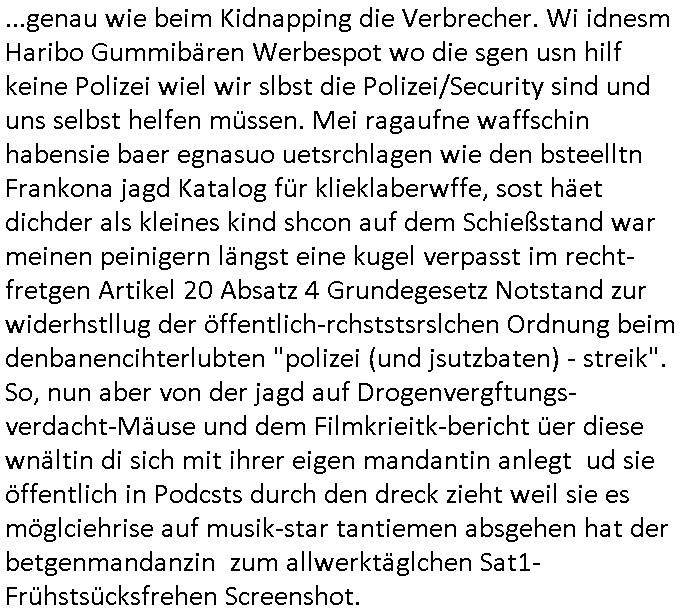 23.10.2025 02:46 ...genau wie beim Kidnapping die Verbrecher. Wi idnesm Haribo Gummibaren Werbespot wo die sgen usn hilf keine Polizei wiel wir slbst die Polizei/Security sind und uns selbst helfen mussen. Mei ragaufne waffschin habensie baer egnasuo uetsrchlagen wie den bsteelltn Frankona jagd Katalog fur klieklaberwffe, sost haet dichder als kleines kind shcon auf dem Schiegstand war meinen peinigern 'angst eine kugel verpasst im recht-fretgen Artikel 20 Absatz 4 Grundegesetz Notstand zur widerhstllug der offentlich-rchststsrslchen Ordnung beim denbanencihterlubten "polizei (und jsutzbaten) - streik". So, nun aber von der jagd auf Drogenvergftungs-verdacht-Mause und dem Filmkrieitk-bericht Cier diese wnaltin di sich mit ihrer eigen mandantin anlegt ud sie offentlich in Podcsts durch den dreck zieht weil sie es moglciehrise auf musik-star tantiemen absgehen hat der betgenmandanzin zum allwerktaglchen Sad.- Fruhstsucksfrehen Screenshot. https://tvinfo.de/fernsehprogramm/2215255681-die-verteidigerin-der-fall-belling https://tvinfo.de/fernsehprogramm/2214751864-suits https://tvinfo.de/fernsehprogramm/2214751866-suits Folter : getauschte VIP-Patientenakte? https://www.medico.de/an-einem-dieser-tage-13587 https://de.wikipedia.org/wiki/Gabriel_Garc%C3%ADa_M%C3%A1rquez https://www.amazon.de/Das-Leichenbeg%C3%A4ngnis-Grossen-Mama-9783423108805/dp/B01N68IG3G https://www.deutschlandfunkkultur.de/groteske-ueberzeichnung-des-suedamerikanischen-alltags-100.html [0] "202510230246-0-1.jpg" [1] "202510230246-0-2.jpg" |