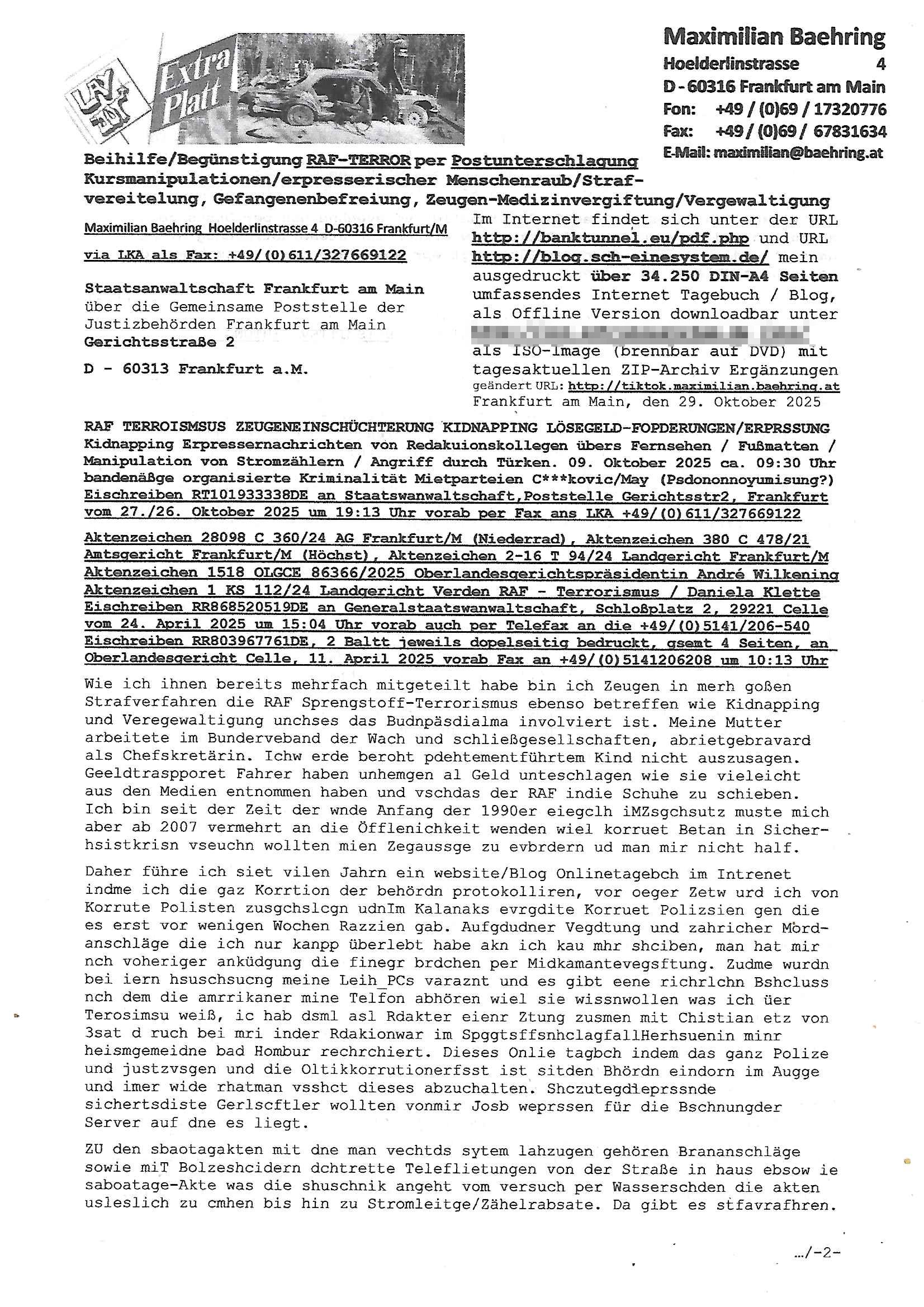 vom 27./26. Oktober 2025 um 19:13 Uhr vorab per Fax ans LKA +49/(0)611/327669122