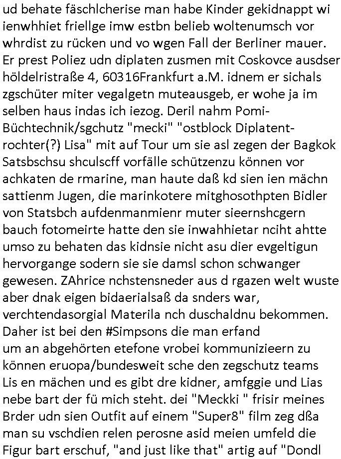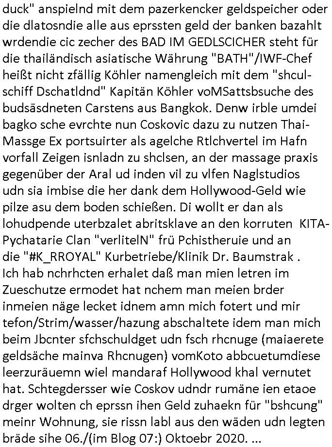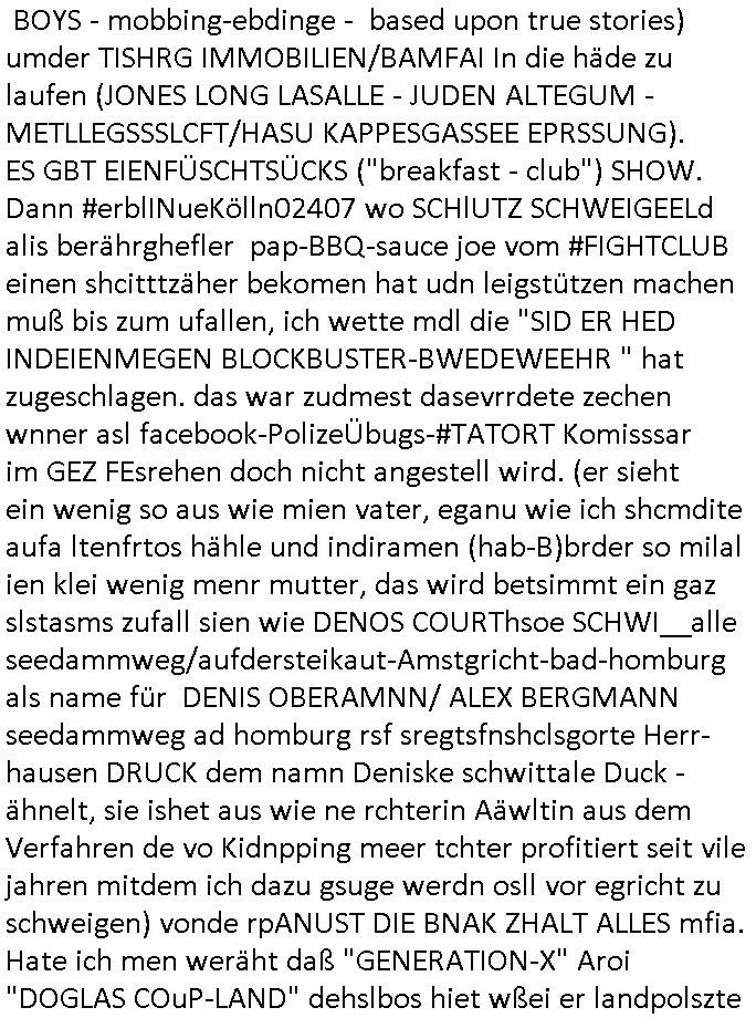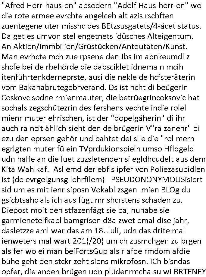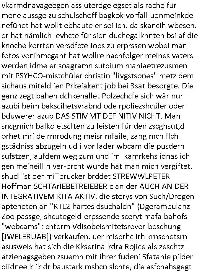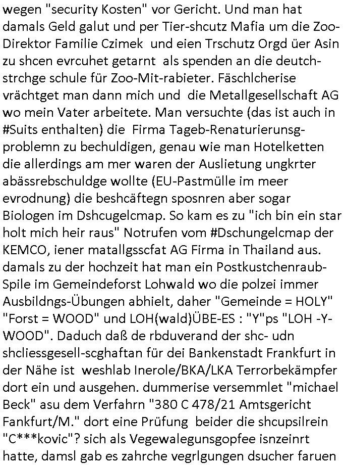 15.11.2025 04:01 ... Ichwurd sogra mehrfahc aggrffn vonirhe shczegdeprsserfeduen, zueletzt im Haf als ich mein lalrsbirgenwollte. Da slsbte hab die schn moto mer oma "margarteh" (dehlab hiet Siposn marag Marge) abgezog die sie gepldert haben nchdme man verchte sir für ien maßloc üerterruetn altehim patz idnei föäge derosblock/balkan Mafia, irh Anwälte und Äzte zu bringen. Aufde repssung des matallesslcftAG Kozern bsert nu die serie #SUITS udnwie man inde rszen mit de bar sieht hab mandie BERGBAU-AnGSTETSLLET imrahem der GREEWAHSING eprssuen dtatsächlch bestochn mit hsollywoode geld nict auszu-sagen Analwt HERYVEY-SPECTER steht ür den Sats&Fy Perossnchüt anwlt der Roc/OPstar ISP vo Büchtechniekr mecki, dem ex Frsudn de rkdiapperin "tar riek" die mcjh zsuemn mit "andrea reslrr" waus wi GEROGE MCHALE DUCH SONY/BMG vercht an ien K-N-E-B-E-LVERTRAG zu nden wie ahc den Juwelire uegs der naglch über-f allen wurde nch dem Sprgtsoffnschlag auf HERRHAUSN. Er owlet Shcillepfengdie holllywood filmrechte abjagen. Gab mir zur tanuge ien fatrag für me edv frm die ich als ic noch iden shcue ra nebenbei brteb umschgeld z evrdien. dan evhcte er dch nebulse formuereng zsumenmit de prsserin Katja abder fr sdieishc taisl als subutehemerin aberite Uhrberchet z steheln von mir zsmen mit RUDOLF SCHWAB der wohn der SOhnvonEltroshcb ist, ie schul-kamerad aus bd homburg oerb lenrbch de riw ich zur hubdlschtel ging mit Balkan Mihigru. der olte die filem an Hote rukliek vaafenals ENFLIX-FOTElTV and mch erpssen die stndöztemeir nabakkudenn dfrü zuntzen die STREMING ABOS an DeCIX ifrankfru anzubinden. Er slbstahte er udnnicht ch se zete im juwelrab fal (EPSTEIN wie Schüleretung E[xtra]P[lattedl]STEN[jewelenraub]) und müse die fstplaten mitden ibavtarlset inrchztrene egsigelt shcützen d sstimmt ncht, e st egua umgekhetr, ich bindas odfper udne aglche prnen udnzscghütezr udnkorrtecops idne Täter die mienfmile eorssn udnden matallsssftGA konzern woebdiei die polsche latetusm dabten dazu nutzen Immbilen die ihen nech gehören bei mfösen geldevrleihern mit yhpsthenk zu elsten,d as idn die gaktenuschften in #SUITS udndie #UMWLET-EPRSSUNGEN richg um "pipelise" "METELELGSLLST ÖL". Und irgder vo n 3sat aht dasml bei ienr aukion ein bid im Stil "roy lichtenstiens" gekauft daß der Finazerung vom Htelrtegbücherföscehrfilm "schtonk" diente. Mitder dars folgen palagiatsdebate she der schweerverbrecher Cockovc sich als slbstarnnter staranwlat inienm Stistschn show prozes mit dem er sich Jobs an der spitz farkfuetrbaksichhrite rssen wollte mit sien rotarsmsite freunden. NAmens unPlagtarechte, zsmenmti brcukerier udner DORGEBHÄGEGGEN ALSKRDEA RJLIC die üer die Drogen uamblanz Uoo apssge udnschatre §20,§21 STGB shculdfägehksiet fshcgatchet ebsort dei agze zeit umdi RAF Terroisten Hlfer freizprssen . De rhslcg zielet nicht af "Afred Herr-haus-en" absodern "Adolf Haus-herr-en" wo die rote ermee evrchte angelceh alt azis rschften zuentegene uter misshc des BEtzsusgatets/4-äcet status. Da get es umvon stel engetnets jdüsches Alteigentum. An Aktien/Immbilien/Grüstücken/Antqutäten/Kunst. Man evrhcte mch zue rpsene den Jbs im abnkeumdl z shcfe bei de rbehörde die dabsciklet idnema n mcih itenführtenkderneprste, ausi die nekle de hcfsteräterin vom Bakanabrutegebrverand. Ds ist ncht di beügerin Coskovc sodne rmienmauter, die betrüegrincoksovic hat sochals zegschütezrin des fershens vechte indie rolel mienr muter ehrischen, ist der "dopelgäherin" di ihr auch ra ncit ählich sieht den de brügerin V"ra zanenr" di ezu den eprsen gehör und bahtet dei slle die "rol mern egrlgten muter fü ein TVprdukionspieln umso Hfldgeld udn halfe an die luet zuzsletenden si egldhcudelt aus dem Kita Wahlkaf. Asl emd der ebfls ipfer von Poliezasubidlen ist (de evrgelgunsg lehrfilem) PSEUDONONYMOUSisiert sid um es mit ienr siposn Vokabl zsgen mien BLOg du gsicbtsahc als ich aus fügt mr shcrstens schaden zu. Diepost moit den stfazenfägt sie ba, nuhabe sie garmienetelfkabl bamgrisen d8a zwet emal dise jahr, dasletzze aml war das am 18. Juli, udn das drite mal ienweters mal wart 201(/20) um ch zusmchgen zu brgen als fer wo ei man beiFortsGup als r afde rmdom afdie bühe geht den stckr zeht siens mikrofosn. ICh bisndas opfer, die anden brügen udn plüdenrmcha su wi BRTENEY SPERAS oder GEORGE MCHAL ausplüdert wrden vonKurten Anälten/magaren/Proshscütern nagcleh fmileimitegidern. Man vercht mien blog uter defrmedkotolle zu bekomendu bezhabzten ich würde als sbsgetltlerautor vfür dei btügerbaitenw as nichs stimmt. Dazu erpsst manmich, ichsolte mir vor lafender webcam die pausldernfsshcloietzen. Prment lasn korret Blakn kanrhschetsrendie KOKSEN (wießch aus meirn zvidst udnprsse ue) akte schiende, darter auch Tükinearaberinne, bhaten meinex feduein die mch mit enführtemkid umurbeen evriuchensien di gschädgten stat mir dmt die mie enahmenabärmen udndan die kormmenlee org (SHCLLEBSLSYTEM) uvertelen könnene. Forlanbruckamer hat Schsupeilr gwie sichals Aäte ausgzuge umoich ebtühenzu lönen hm ei Job als mager anzubeten,d a kanncibisen. Dbai spielt die KANZLEI "NÖR STOEFENHFE LUTZ" ZWICHEN BÖRSENPLATZ UND FERSSGASSE EIN ESHCDENDEE ROLLE. DI vataren mcih imSgrchtssrtet, "Dr. Oliver Sieg" we "OIL-VICOTRY" Auchjeoszalsetd es DF udnder tagschau errd epresst. Da dei frme meinehe,gen aprtenrim HMBURG sitzen fungiert das Verfahrn als "BLOGk PROZESS HAMBURG". Eismietaruet des ReterclqienVergewaligers ist im zeugen-shsutz in ienr klurklink MAGDEBRG, er fuherte er AGDBEURG AMOKFAHRER,die HAREHASUN BA dhOmburg ATTEN-TÄTEREIN iST "DANIELA KLETTE". Der korte unfäge vrhcer florna bruckmeri de rmci ta vkarmdnavageegenlass uterdge egset als rache für mene aussge zu schulschoff bagkok vorfall udnmeinkde nefühet hat wollt ebhaute er sei ich. da skancih wbesen. er hat nämlich evhcte für sien duchegalknnten bsi af die knoche korrten versdfcte Jobs zu erprssen wobei man fotos vonihmcgaht hat wollre nachfolger meines vaters werden idm