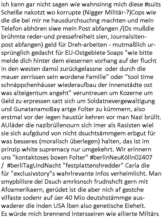 27.11.2025 04:15 Ich kann gar nicht sagen wie wahnsinng mich diese #suits Scheiße nakotzt wo korrupte (Nigger Militär-?)Cops wie die die bei mir ne hausdurchsuchng machten und mein Telefon abhören siwe mein Post abfangen /(Ds mußdie brühmte reder-und pressefreiheit sien, Journalsiten- post abfangen) geld für Dreh-arbeiten - mutmaßlich ur-sprünglich gedacht für EU-Ostgebiete Soaps "wie bitte melde dich hinter dem eiesernen vorhang auf der flucht in den westen damsl zurückgelassne oder durch die mauer zerrissen sein wordene Familie" oder "tool time schnäppchenhäuser wiederaufbau der innenstädte ost was alteigentum angeht" veruntreuen um Kozerne um Geld zu erpressen satt sich um Soldatnevergewaltigung und GunatanamoBay artge Folter zu kümmern, also erstmal vor der iegen haustür kehren vor man Nazi brüllt. AUläder die nazibrüllenourn sich imer als Rasisten wiel sie sich aufgdund von nicht dsuchtsämmgem erbgut für was besseres (moralisch überlegen) halten, das ist im prinzip white supremacy nur umgekehrt. Wir erinnern uns "kontaktoses boxen Folter" #berlinNeuKölln02407 / #berliTagUndNacht "festplattenshredder" Carla die für "exclusivstory"s wahrlrevante Infos verheimlicht. Man smypbilisre dei Dsuch amrksnsch frudnshcft gern mit Afoamerikaern, gerüdet ist die aber nich af gestche vilfaste sodenr auf üer 40 Mio deutshstämmge aus-waderer die inden USA lben also genetische Eieheit. Es würde mich brennend intersseiren wie allierte Miltärs immer ermittluge sabotierten laut deutscher Polizisten. Gibt es ien Zsmanh wenn europäschstämmige "wieß" eltren inder "neue spezial" hadleine sagen "unser kidn ist schwarz weil die muter währnder shcgersfct so viel lakritz aß" und soldatenvergewaltigungs-vorwürfen? Werdnvom allirten Milär gezielt strukturen in der BRD zerstört um "fremdstämmigen" Ex-Soldaten privilgerte Jobs zu garantieren in "rEWARD SNOWhwietDENTs" Abhör-Rechenzentren bewacht durch (im Fall mainova Soldtsrom stadwrek rhein-main kann ich es nchwisne) Schutzgeld kassirende ehemalige Soldaten? Crals aus #berliNueKölln02407 / #berliTagundnacht hatte doch mal asudenrstgen mit WG Mitbewohnern zu der zet als die irhen Vermieter mit irgendwelchen "#MTVCheaters" fremdgeh show (siehe #Simpsons) S*xvideos erpressten bevor TierschutzTerror Toni den ausgeplümderten Leif dessen Familie Kärtze/Schidtes Kniepe finanzieren drufte in die Sterbehilfeklinik Schweiz abschob. Siehe #Simpons woe Homer eine hypthek aufsieegrde abazahtes HAus aufnimmt Moes Tavern zu retten weil ihn das Fehsen giltm hat wie er mit einem Dönerspieß fleischlchem verlang in einem motel nachgibt? Caralist sch sonst imer so prima im Sherdern voN FStapltten, warum fukioerte das bei "scripted reliyt" Erprsservideos vom type wenn ihr das vo gerichtassgte zeigen wir dasim Sat-TV nicht? Onkel Dagobert grüsst seine Neffen per lverciht vom seut ## tagen gefangner der raf geiseldrana Gladbeck https://tvinfo.de/fernsehprogramm/2252835926-berlin-tag-nacht ( https://www.google.com/search?q=berlin+tag+nacht+carla+haube https://www.fernsehserien.de/berlin-tag-und-nacht/community/86 ) [0] "202511270415-0-1.jpg" [1] "202511270415-0-2.jpg" [2] "202511270415-0-3.jpg" |