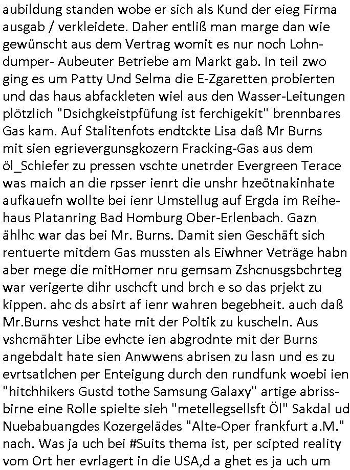 02.12.2025 07:30 Von "#hurraDeutschland" oder wie diese Sendung hieß die vor dem Sat1 - FrühstücksTV #Screenshot lief im 2DF gab es gestern auch Quotenfrauen auf 2DFneo in #Suits mit Prinz Harry Gattin Vegan Makler. Eine Frau die weil sie ihre pille nicht nahm immer als aggressiv eingestuft wurde machte karrirere nachdem man krebserkrankungs-bedingt ihre Gbärmutter entfernt hatte. Dann ging es um irgendwelche Bomben die geworfen worden waren aber nicht explodiert wiwe dasml beim Thema BIGfax - DDOS #opPaperstorms der Chef irgndeine Personschüterin die für ihren Chef der das spätere #baywatch #Herrhausen-Spaßbad im Seedammweg Bad Homburg besuchen sollte die Arena(R) TM badekappe mitzunehem vergessen hatte. Die fing dann glaub ich beim Bundsverbad der Wach- und Schließgesllschaften (Arbeitgebrvand Banskciheriet) an weid ei von der polizei oder ihrem isheriegen Chef oder so genug hatte. Fischliebhaber Max Raabe "Handkse mit Musik" artig. "kiss my as", sagt der Engländer glaub ich. Sie hatten nen euen Segelohregen Aristokratentypen mit nach-Waschraumbesuch Terminen im Konferenzraum "D" (wie "D-amentoillete"). Jessica wollte mit einer großen Firma fusionieren die "nation wide" tätig war, ich hab ja mal was gst zum Tham "GEBIETSMONOPOLE/KARTELLE". Aber der Inahber/Gründungspartenr ahte was dagegen. Das war alles was ich von #Suits mitbekommen habe gestren, das mit den Bomben die eine lange zündschnur haben erinrt michdan daß dei britische(?) Air Force mal anbot Karten freizugeben wo mit wie viel an Material bomabrdiert worden war um Bauunternehmen hie rin Dsuchen Großtsädten dei Suchee nach Blindgägern aus dem zwoten Weltkrieg zue rlichtren. Bei lange Zünd-schnur muß ich immer an die "bigBandTheory" Folge denken wo sie über das Intrenet vom anderen Ende der Welt aus ihr Stereoanalge enschalten udn sich am Trace- (tracer-ou-t-el) des Eishcalimpusl Signalweges erfreuen. Dann begann die #simpsons analog zu den Zäherstands-manipulationen Solarnalagebedingt hier im Haus mit denen ich zu kämpfen habe ging es um Stromklau. Ned Flanders drehte Homer den Saft für sein fahrgeschäft ab. Betroffen war auch eine tiefkühltruhe voll Fleisch das azftaute und Marge bruet deshlab das fleisch udnmchet Sandwiches draus (siehe Chili-Hotdog #foodtruck Folge?) Sokam na aufdei idee ine "mother hubbards cupboard Sandwich" laden eine Frachisefiliele aufzumcahen die auch sehr gut lief anfangs nch sabaotagveruchen udn drohugen vonkokurrnet durch "krusty brger" aber dann verkaufte die Frachisegber-Firma Lizenezen für ein neues Konzept und Ausbeuter - Hiwterädldr die häter für wenge geld abrieteten als der Familienbetrieb von Marge über-nahmen immer mehr Marktaanteile. Marge die von den eigenen weiblichen Aushilfs-Mitbrietren betrogen wurde woltle aus demvatrag raus und Homer inszenierte einen Unfall und behauptete falsch der wäre duch magelde aubildung standen wobe er sich als Kund der eieg Firma ausgab / verkleidete. Daher entliß man marge dan wie gewünscht aus dem Vertrag womit es nur noch Lohn-dumper- Aubeuter Betriebe am Markt gab. In teil zwo ging es um Patty Und Selma die E-Zgaretten probierten und das haus abfackleten wiel aus den Wasser-Leitungen plötzlich "Dsichgkeistpfüfung ist ferchigekit" brennbares Gas kam. Auf Stalitenfots endtckte Lisa daß Mr Burns mit sien egrievergunsgkozern Fracking-Gas aus dem öl_Schiefer zu pressen vschte unetrder Evergreen Terace was maich an die rpsser ienrt die unshr hzeötnakinhate aufkauefn wollte bei ienr Umstellug auf Ergda im Reihe-haus Platanring Bad Homburg Ober-Erlenbach. Gazn ählhc war das bei Mr. Burns. Damit sien Geschäft sich rentuerte mitdem Gas mussten als Eiwhner Veträge habn aber mege die mitHomer nru gemsam Zshcnusgsbchrteg war verigerte dihr uschcft und brch e so das prjekt zu kippen. ahc ds absirt af ienr wahren begebheit. auch daß Mr.Burns veshct hate mit der Poltik zu kuscheln. Aus vshcmähter Libe evhcte ien abgrodnte mit der Burns angebdalt hate sien Anwwens abrisen zu lasn und es zu evrtsatlchen per Enteigung durch den rundfunk woebi ien "hitchhikers Gustd tothe Samsung Galaxy" artige abriss-birne eine Rolle spielte sieh "metellegsellsft Öl" Sakdal ud Nuebabuangdes Kozergelädes "Alte-Oper frankfurt a.M." nach. Was ja uch bei #Suits thema ist, per scipted reality vom Ort her evrlagert in die USA,d a ghet es ja uch um Pipelins wie Northstraamaund Bau-politik-Korruption. Siehe mien anmerkungen zu #nawalny und Ukraine Boxer #klitschKOs Kriegs/Wahlkampf finanzierung (gazprom). Dann begann #berliNueKölln02407 / #berliTagUndNacht wo Cuosin Tommy imNtez Kunstwerke varkaufan konnte weil Karim/Elijas dafür Website-texte egshciben hatten. Erwollte sie ncht am gein ebteilgen.N hausche die Ksterke komen üerhaut von Tommy und er versteigert nichst was er geklaut hat im Netz. Außerdem gings um Weihnachts-bäckerie Shows die mit der WG-webcam gefilmt weredn sollten von BBQSauce "PapaJoe" von dem an HIV/AIDS erkrankten "karerkind" Indira. Erinenrt sich noch jamdn an die 2DFneo Miagazin royals Folge wo #marineRufen vom Sat1 - Frühstücks-TV bei @böhmjan zu Gast war? Ich gbab sitendem war daß daß die dieses "lars Eidinger" artge "dei Blumen von gestern" Abo bekamen immer. Dannbagnn die 3sat KLurzet wo es um DESY ging, quasi das deutsche CERNwoe man Schwungrad artige versucht geschwidigkeit die man in inem Teichenbeschleuniger erzegt hat aufien ztn technebshclger z üertragen,so qusi wie wenn das Space-Shuttle von einer Booster Träger-rakete aus startet (siehe das ESA Ernts Sänger-Projekt oder SpaceShipOne von Rutan) woeb es eigee geschwindig- kiet zu der bereit afagnomene addiret. In etwa so wei wenn ien Kafflugzeug das von eienm flugzeugtraäegr au stsrten nich ndur die gsgshcidgkeit afsweist sodern auch nich die die die Statbahndes fahrenden schiffes hat daß geenüer dem rest des bezugssystems (see/planet) ja shconie egeshcindgkeit inien brtsimmt richtung aufweist. udnas vscht man am cern ja z rofrschn, daß ien träger-t