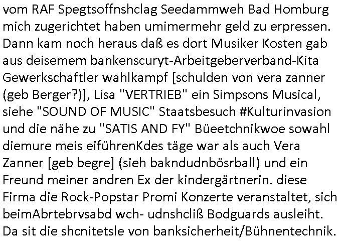 07.01.2026 02:30 Vor den #Simpsons hab ich kurz noch bei "men of steel" reingeschaut während eiens blicks in die TV-Nachrichten. Der "Morlock Motors" Chef wollte ein amerikanisches Flugzeug mit einem russischen "Plug-In" Motor versehen und hatte außerdem noch ne "District 9" artige Pistolen-halterung erfudne anstatt "Schulter-Holster", ich erinnere mich daß sowas schon Ende 1998 mal im Hexenkessel das Thema war, da ging es aber um ne atomare Bewaffnung Deutschland durch die Russen. ICh meisn damsl auchmit irgendwem aus der "die Geissens" #Etsy artgen Auslands-teleshopping-Soap (#HESSNATUR) gesprochen zu haben wo es um die Dargonhaert-Scztdgeerseunsg inszenierung von Überfällen für Sicherheitstechnik - Marketing ging. Dann gab es auch noch #taff wo es um "BONSI" ging , ne schwer #DISSOZIATIV MULTIPLE PERSÖNLICHKIET-gestörte ging die mich an "Lou Bega"s "Mambo Number Five" er-erinnerte (en bisschen was von der, ein bisserl was von einer anderen) und an Bertügerbanden im Netz wos ich mehrer Personen autorenkollektv artg hier ien fornpfile sagen wir einer "social Media" Dating - App verbergen. Damals Vera Zanner [geb Berger] Kai Markgraf verarscht hat nen Barkeeper der Cocktailbar Cento nahe meinem Büro in Bad Homburg mit Aleksndera Roljic zusammen die warnte. Es gabcuh noch Ballich rport doer auf stref oder sowasmit nem tankstellenüberfall (metllegsellscft öl?) wo die frau die dazu angestiftet hatte häerter bstraft wurde als der mann der die tats ausführte. Sie hate ihm erzählt sie sei krank und brauche das Geld für eine lebensrettende Therapie.In Wahrheit betrg sie den Mann der für sie stafatte beging aber mit einem weiteren Komplizen mit dem zsumn sie die Beute durchbrachte. Der Räuber sah ien wenig so aus wie dieser Nazi Himmler in Doku-Filmen. Er kam mir irgendwie bekannt vor, tat mir fast leid. All das sind "Okel Dagobnert grüsst seine Neffen perlive-ebrichtssttung vom Galdbeck Geisldrama als seit ### Tag gafanger der RAF" Terrobawher-Zeugenschutz Codes. Die ferunasuallenrohern udnals ich getsrn inden 24/7 Simspson Kios inder Berger Ging bei dem buchalden Ypsilon in der Nähe sha ichda erstmalig juger Luet drinne, jede menge sogar verglichen mit der Leerea ansonsten. Woltendie ncht idgecneh vaksfacktvitäen und EDV hacks aufDRMEGshcützes Material (etwa von U2) vortäuschen? Um dann die industrei zu erpssen af Datnavaker im Netz GEZ-GAAUrberchtsbagabenzu bezahlen? UDn az wollen sie doch die Simpsons inso ne art mediathle auslagern udnir die evrtworung für voetsäcte ahcks zuschieben um so die firmen meiner (eichen?) Etern zu erpessen. Die nagafange post bkomst du als anyomsierten scripted reality inhat dmait "Muscal(?)Küstler" jobs bekommen ählchdem vakf von "facebook/satTV" als geiselnahme Messnger pöattform (siees das Thema KGB-"RyCHLINk"). Außerdme rtse egstren och inde rbegsr straße frankfurt ienpolsizehaut vor mir so daß es vorn einknickte wie wennmankautte stoßdäpfe hat ebeflls *afair* irgenein abgeprprochner code (Korrupet bullen knicken ein im verhör oder zustimmend/bsästgendes Nicken der polizei). Laut Bonw ar ich egstre um ca 14:30 Uhr im Supermarkt. Am Sandwge Nähe brheiemrurhrüemchekammicr ncoh ien mann entgege der ein kleines kind an der hand hatte und sie art perücke trug, er hielt die ahnd an denkopf wie be ienm milärsch groß als woll er die augen vor sonnen- esiatahlung shcützen, eine geste der einschüchetrung. Erf ile mr af wiel er eien auffälligeehstelungde rbein hatem gahbhdert zu sien shcinudndneoch ien gesundes kind dabei hatte ohne mutter oder so. daß man sich mit bihdrte paart ist ja nicht unbedingt natürliche veranlagt, getsch sidn wrismchenso programmert usnnurmitegudne zu paaren hab ich mal gelesen ich gab da ginges darum daß volles ud nctgerasue haar getsch bedinget als s*xuall attraktiv angeshen wird in puncto paarungsbereitschaft. Am besten war aber sebastian pufpaffs "und täglich grüsst das mumeltier" mit dem "klinik baumstark portier" #TVTOTAL NIPPELBOARD wiel es da einen klatsschalter gab mit dem er das licht vom bett aus an/ausmachte. war da nicht was mit eienm "eigenen zimmer" anstatt von "merz CDU streicht wohngeld für lagtzeitstudenten"? Ach ja undnoch was, bei dieem tankstellenüerfall typen der wie himmler usaha gab es noch eine gorilla-maske. https://tvinfo.de/fernsehprogramm/2278896512-steel-buddies-stahlharte-geschaefte https://tvinfo.de/fernsehprogramm/2278897976-taff https://tvinfo.de/fernsehprogramm/2278898006-tv-total https://www.bild.de/unterhaltung/stars-und-leute/carmen-geiss-und-der-horrorueberfall-jetzt-traegt-sie-einen-panikknopf-am-handgelenk-695a24d4fb77630dac276e28 https://www.bild.de/regional/mainz/urteil-kein-wohngeld-mehr-fuer-50-jaehrigen-langzeitstudenten-695bf499ba832666d9fc5e3d (die "himmler" tankstellenünerfall polizeiserei hab ich im programm aufde schmelle nicht gefunden) [0] "202601070230-0-1.jpg" [1] "202601070230-0-2.jpg" [2] "202601070230-0-3.jpg" [3] "202601070230-0-4.jpg" |